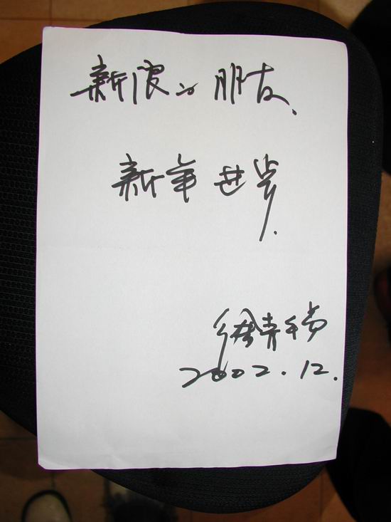 >竟然没人发我们在地铁探班时老徐的题字。</P><P><img src="attachments/dvbbs/2005-5/2005520193010605.jpg" border="0" onload="if(this.width>screen.width*0.7) {this.resized=true; this.width=screen.width*0.7; this.alt=\'Click here to open new window\nCTRL+Mouse wheel to zoom in/out\';}" onmouseover="if(this.width>screen.width*0.7) {this.resized=true; this.width=screen.width*0.7; this.style.cursor=\'hand\'; this.alt=\'Click here to open new window\nCTRL+Mouse wheel to zoom in/out\';}" onclick="if(!this.resized) {return true;} else {window.open(\'attachments/dvbbs/2005-5/2005520193010605.jpg\');}" onmousewheel="return imgzoom(this);" alt="" />