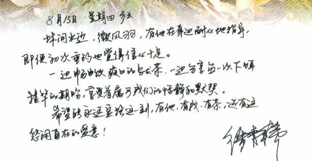 <>再来补充一个,《情书》里的夏琳真迹。</P><