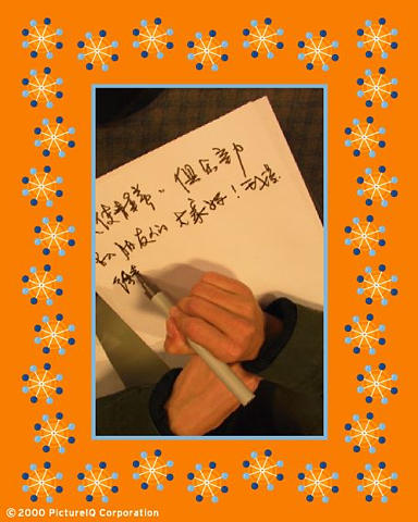 >老徐写了半天就,就,就一个字帅呀,我比你强点儿,我认为老徐最帅的字有四个——“风花雪月”最不帅的字有三个——“徐静蕾”(但比较有味道)。呵呵,这么算来,四减三,老徐的字不用说什么了,帅就一个字。</P>